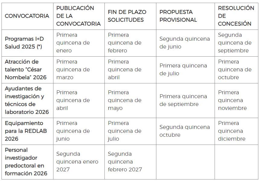 Este calendario tiene como finalidad informar a la comunidad científica y de innovación sobre la planificación de las convocatorias de la Dirección General de Investigación e Innovación Tecnológica de la Comunidad de Madrid que están en curso y que se publicarán en el año 2025. La DGIIT está comprometida a seguir este calendario en la medida de lo posible, pero el proceso de tramitación de las ayudas es complejo. En determinados pasos, estos procesos no dependen exclusivamente de la DGIIT, ya que puede ser necesario tramitar cambios normativos, aprobaciones de Consejo de Gobierno, etc. El calendario de convocatorias se actualizará de manera regular, cuando se produzcan cambios en las fechas de tramitación, para garantizar que la información esté actualizada y refleje las últimas novedades y cambios.