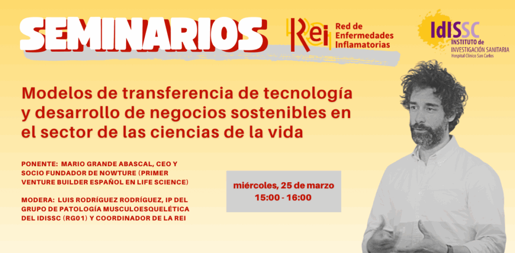Ponente: Mario Grande Abascal, CEO y socio fundador de Nowture, el primer venture builder en el sector de las ciencias de la vida (life science) en España.